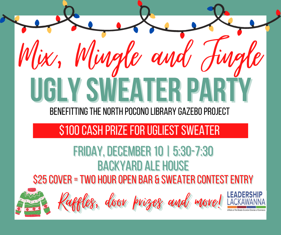 Leadership Lackawanna Mix, Mingle and Jingle Ugly Sweater Party Basket raffle tickets will be on sale – 5 for $10 and 10 for $15.