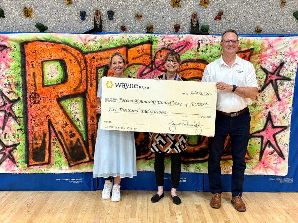 Wayne Bank Donates to Pocono Mountains United Way Supporting Local STEAM*R Program Jim Donnelly, President and Chief Executive Officer of Wayne Bank, is pleased to announce that Wayne Bank has recently contributed to the East Stroudsburg Area School District’s STEAM*R Summer Enrichment Program through the Pocono Mountains United Way and the Educational Improvement Tax Credit Program (EITC). With its invaluable STEAM*R Program, the East Stroudsburg Area School District provides students at Resica Elementary with the opportunity to foster their interest and proficiency in science, technology, engineering, arts, mathematics, and reading. The program is free for current East Stroudsburg Area School District students in Kindergarten through Fifth Grade. Stacie Ammerman, Resica Elementary School’s STEAM*R Coordinator, and Dr. Tabitha Bradley, Resica’s Director of Elementary Education, accepted a check in the amount of $5,000 from Mr. Donnelly. With this donation, Wayne Bank helps to make the STEAM*R program possible, contributing to an investment in education to shape the future of the community by empowering young minds to innovate, create, and excel. “Wayne Bank is honored to contribute to the United Way of the Pocono Mountains and the incredible work they do,” said Mr. Donnelly. “It’s rewarding to know that this donation will help provide essential support to Monroe County families, allowing students to develop early on skills and interest in education.” The gift was made possible because of the Educational Improvement Tax Credit Program offered by the Commonwealth of Pennsylvania, acting through the Department of Community and Economic Development.