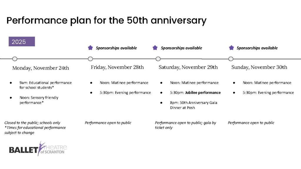 Ballet Theatre of Scranton’s The Nutcracker Celebrates 50 Years Members News October 9, 2025 Click here to find more information. Schedule: