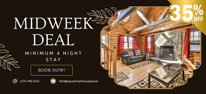 Equestrian House Offering Winter Midweek Deal Members News January 8, 2026 The Equestrian House invites winter travelers seeking a peaceful escape to discover the charm of quieter destinations that make all the difference. Guests can settle in by the fireplace in a cozy log cabin, hit the slopes at nearby Elk Mountain, or simply unwind and enjoy true rest and relaxation. For a limited time, The Equestrian House is offering 35% off when guests book three or more midweek nights at one of its vacation rentals in the North Poconos.