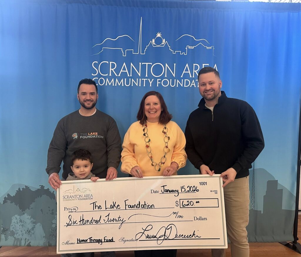Jeannine Luby Announces Recipients of The Humor Therapy Fund Grant Members News January 30, 2026 Jeannine Luby is pleased to announce the 2025 grant recipients of The Humor Therapy Fund of the Scranton Area Community Foundation (for 2026 programming). Recipients are Volunteers in Medicine, an organization that offers a range of free services from dental care to counseling and much more, and The Lake Foundation, whose goal is to strengthen mental health literacy in NEPA through education and advocacy. Volunteers in Medicine, a past recipient of a Humor Therapy Fund grant over seven years ago, will build upon their humor tool kit that is integrated into counseling sessions with clients for healing and lightheartedness. The Lake Foundation is planning an improv workshop with Electric City Improv to help local youth heal through connection and creativity. Noelle Bonitatis, VIM’s behavioral health manager and Kelly Ranieli, VIM’s executive director posed with fund advisor Jeannine Luby to celebrate their recent grant; Luby also met with Jeffrey Lake and his son Harrison, along with Jacob Torba, philanthropy associate at Scranton Area Community Foundation for the Lake Foundation check presentation. Luby worked with the Scranton Area Community Foundation in 2005 to create the donor-advised Humor Therapy Fund that serves to promote healing through humor and laughter in our region. Learn more about the Fund here: https://scranton.fcsuite.com/erp/donate/create/fund?funit_id=1138