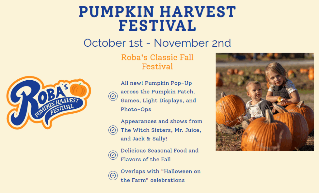 Roba Family Farms Announces Pumpkin Harvest Festival Members News October 9, 2025 Click here for more information.