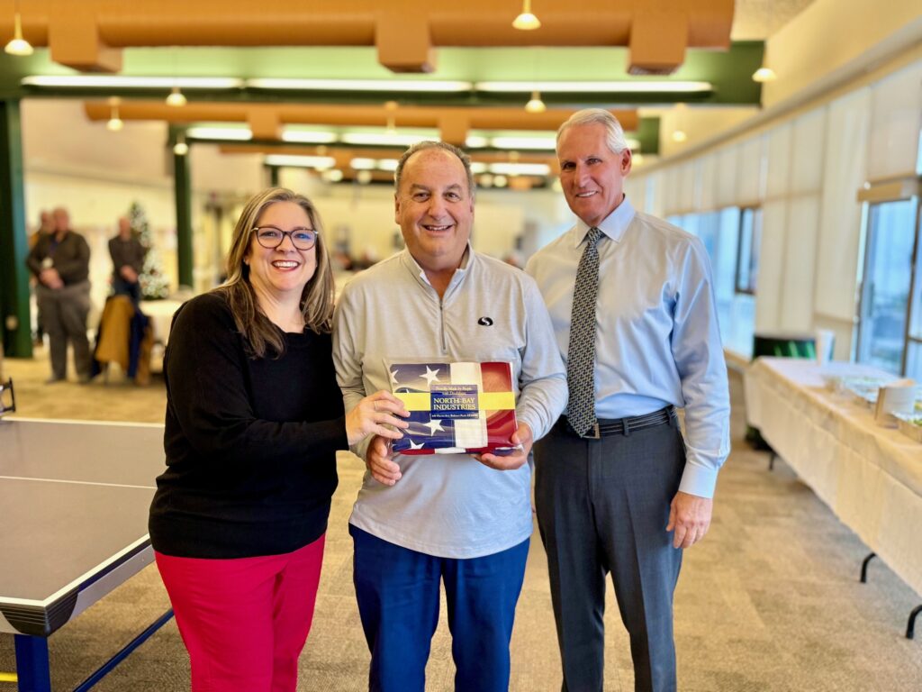 Allied Services VP Retires, Receives Flag From SourceAmerica SourceAmerica representative Marshelle Gaspar presented a ceremonial flag to Bob Ames at a reception today in recognition of and celebration of his upcoming retirement from Allied Services after 35+ years of empowering and enriching the lives of adults with disabilities. Bill Conaboy, President & CEO of Allied Services, first introduced Bob Ames at the reception to many colleagues and thanked Bob for his leadership and loyalty to our organization and for the accomplishments Bob achieved on behalf of adults with disabilities, who live and work with us, across four decades. In her presentation, Marshelle thanked Bob for his advocacy for and commitment to employment opportunities for adults with physical, intellectual and developmental disabilities, as well as explaining the flag was made by adults with disabilities through one of the SourceAmerica partners in California. Left to right: Marshelle Gaspar, Nonprofit Liaison, East Region, SourceAmerica, Bob Ames, Vice President, Community Services and Real Estate, Allied Services, Bill Conaboy, Esq., President & CEO, Allied Services Integrated Health System.